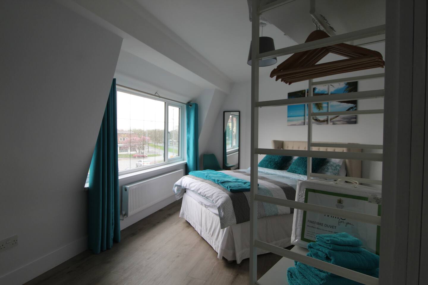 Bathroom * Modern walk-in shower (900x900 cubicle) * Sink with vanity unit and toilet * Complimentary toiletries: toilet roll, shampoo, conditioner, body wash, body lotion, soap * Hairdryer included Other Amenities * Free Wi-Fi (Note: not guaranteed; no refunds for disruption) * Smart TVs with access to Netflix, Amazon Prime, and other streaming services (user accounts required) * Private Garden Area * Free parking * Accessed via a secure communal stairway (shared with one other apartment) * Self check-in Booking Conditions * Lead booker must be present for the full duration of the stay * Damage deposit: £200 (refundable after inspection providing no damage) * Cleaning fee: £65 per stay * Minimum booking age: 25 * Strictly no smoking, pets, parties, or events * Exterior security cameras on property |