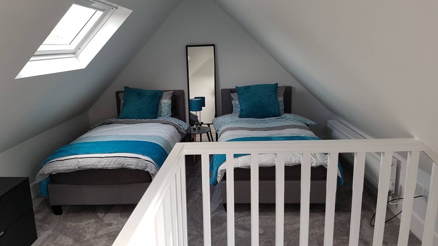 Sleeping Arrangements * Bedroom 1: Double bed with a high-quality Sleepeeze Back Care 2000 mattress and 49” Samsung Smart TV * Mezzanine Bedroom Area: Two single beds accessed via the lounge area * Lounge Area: Sofa bed that sleeps two additional adults Living & Dining * Open-plan lounge/dining/kitchen area with 49” Smart TV * Fully equipped kitchen with oven, fridge, microwave, washing machine, and cookware * Drop-leaf dining table for shared meals Bathroom * Modern walk-in shower (900x900 cubicle) * Sink with vanity unit and toilet * Complimentary toiletries: toilet roll, shampoo, conditioner, body wash, body lotion, soap * Hairdryer included Other Amenities * Free Wi-Fi (Note: not guaranteed; no refunds for disruption) * Smart TVs with access to Netflix, Amazon Prime, and other streaming services (user accounts required) * Private Garden Area * Free parking * Accessed via a secure communal stairway (shared with one other apartment) * Self check-in Booking Conditions * Lead booker must be present for the full duration of the stay * Damage deposit £200 (refundable after inspection providing no damage) * Cleaning fee £65 per stay * Minimum booking age: 25 * Strictly no smoking, pets, parties, or events * Exterior security cameras on property |